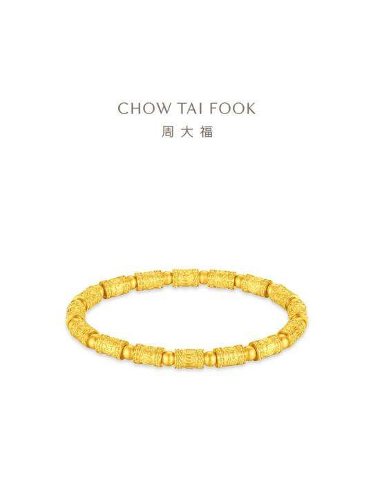 周大福六字箴言金珠弹力绳足金黄金手炼女款计价EOF1845礼物
