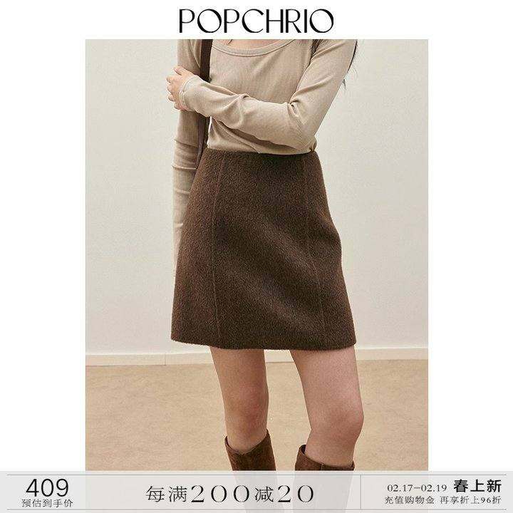 POPCHRIO欧可芮◆经典百搭双面呢半身裙高腰a字短裙包臀裙女秋冬