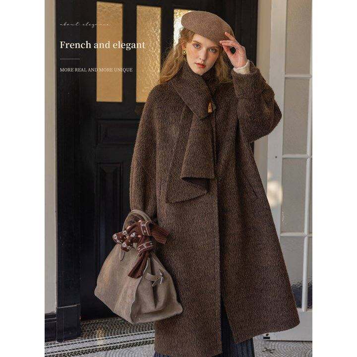 “巴比伦黄昏”苏力混彩呢 可拆卸围巾长款廓形双面呢外套