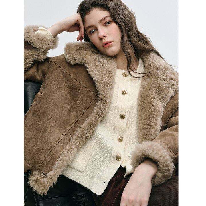 小岛微风“阿尔卑斯”法国进口美丽奴单排扣立领皮毛一体短外套