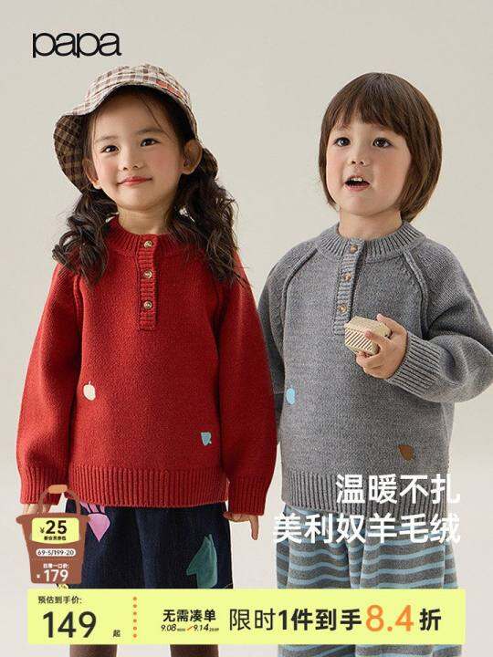 【新品】papa爬爬秋冬季儿童毛衣男女童柔软亲肤保暖针织衫上衣