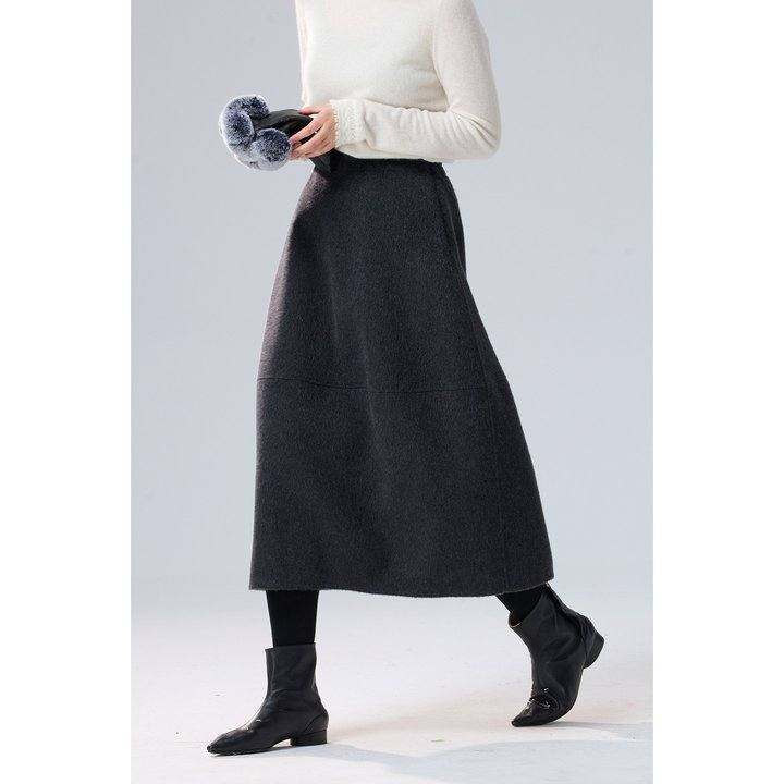 WeTHEE |杏识很厚羊毛双面呢气质花苞裙松紧腰宽松伞裙冬毛呢裙厚