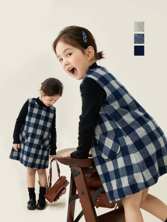 NAIXIBABY|贼气质乖巧!女童羊毛格纹背心裙覆古无袖毛呢连衣裙