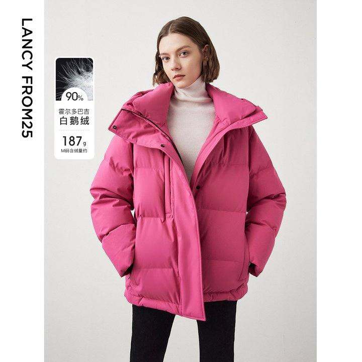 朗姿霍尔多巴吉白鹅绒双层立领连帽休闲羽绒服冬季高级感外套大衣