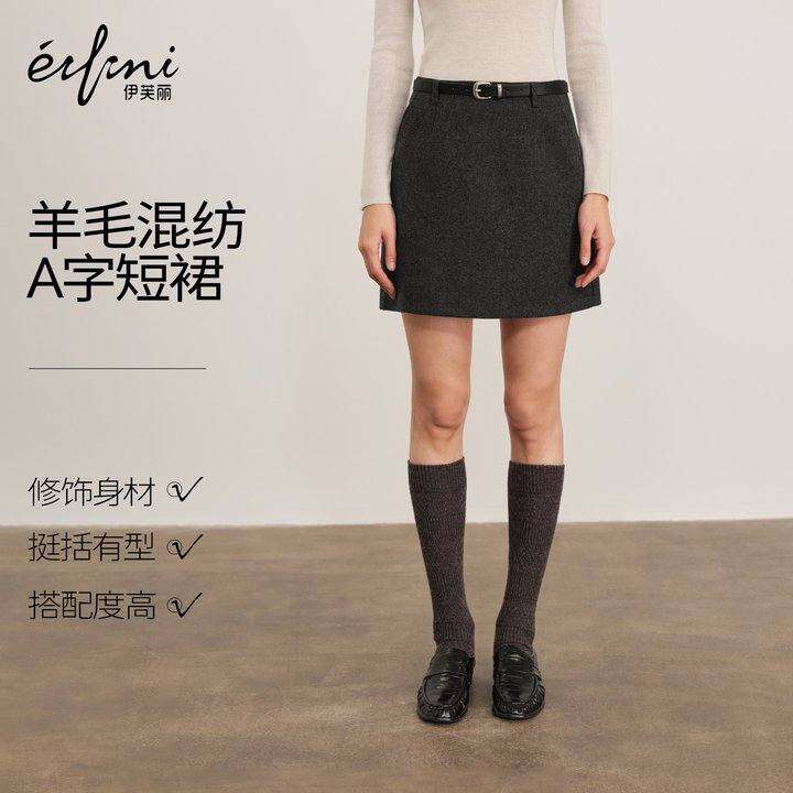 蒋欣代言伊芙丽简约百搭高质感羊毛小A版型呢料短裙2025冬季新款