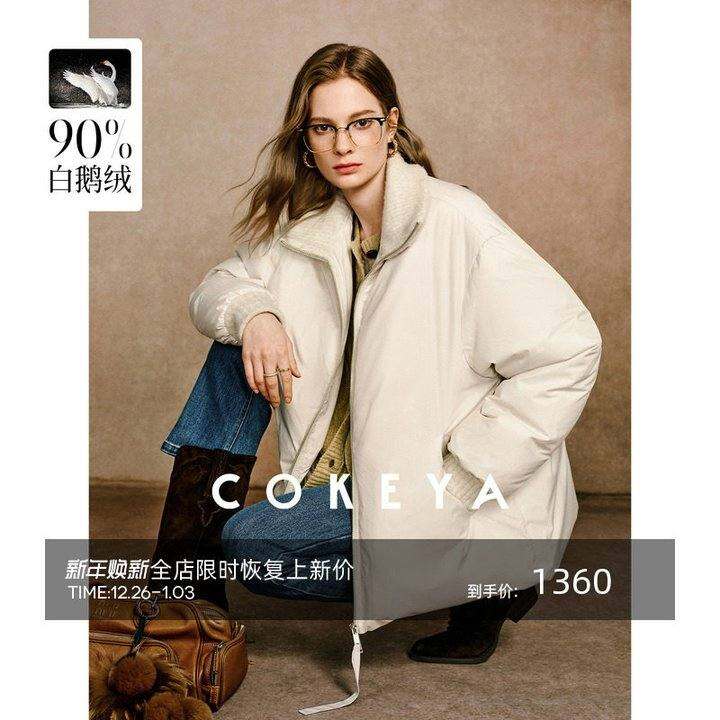 COKEYA/“小雪人”~90白鹅绒针织翻领宽松夹克短款羽绒服外套女冬