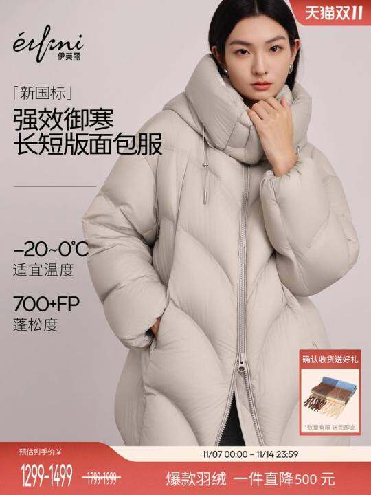 【送围巾】蒋欣代言伊芙丽连帽超暖90白鸭绒面包羽绒服2025冬款