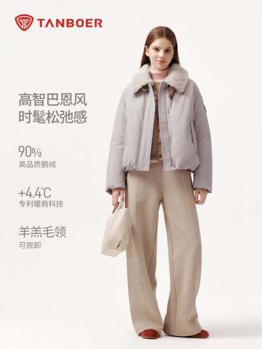 坦博尔2025秋冬季新款巴恩风鹅绒羽绒服女翻领保暖时尚短款外套