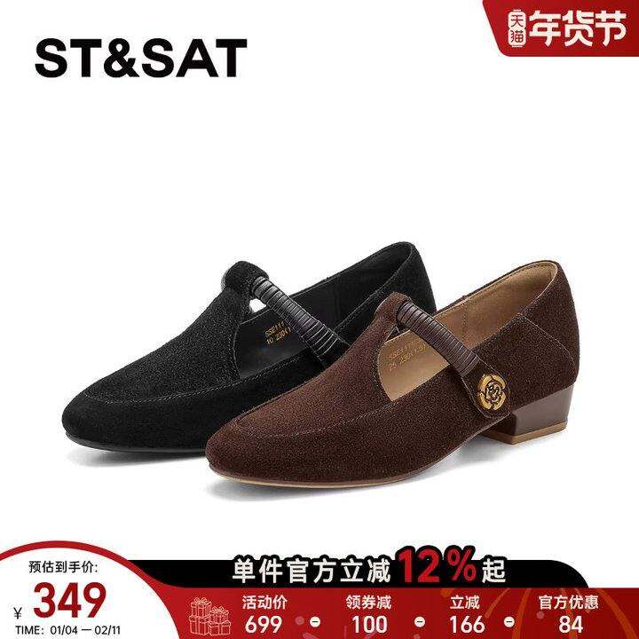 星期六法式玛丽珍女鞋2026新款春季复古黑色一字扣小高跟浅口单鞋