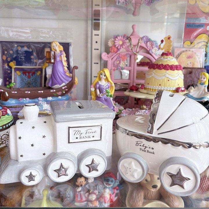 银白小火车 婴儿车造型陶瓷存钱筒 储蓄罐 家居装饰摆件
