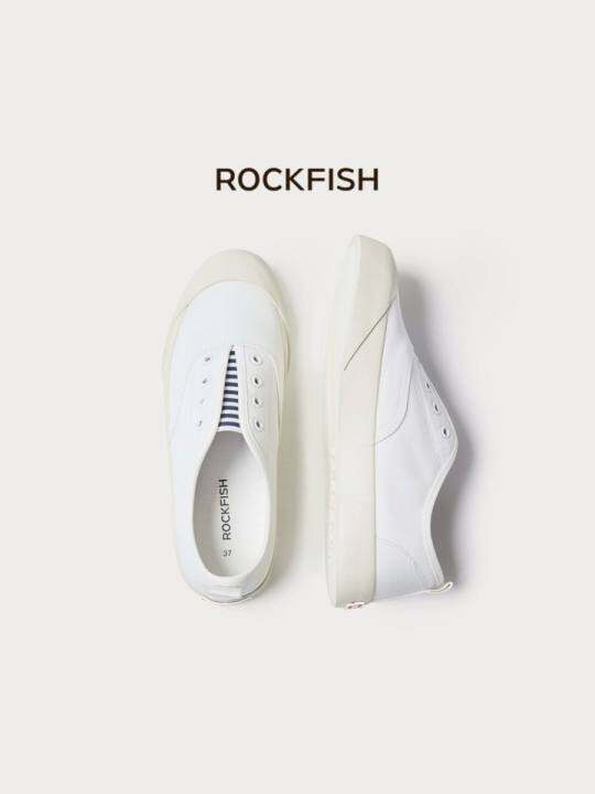 Rockfish懒人一脚蹬轻便舒适透气渔夫鞋女新款白色防泼水平底鞋
