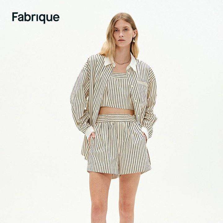 Fabrique 小棕条宽松条纹衬衫短裤套装女2025春季新品两件套穿搭