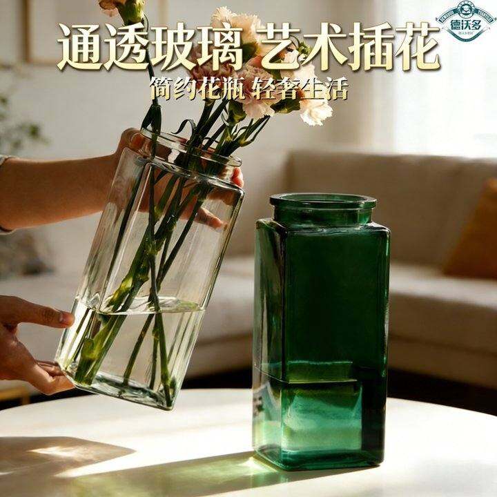 德沃多水培花瓶玻璃百合花方形花瓶直筒玻璃花瓶轻奢创意插花摆件