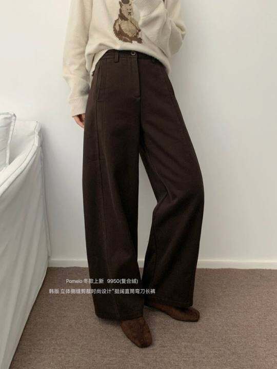 秋冬新款加绒加厚弯刀裤女挺阔显瘦直筒休闲裤子覆古气质百搭长裤