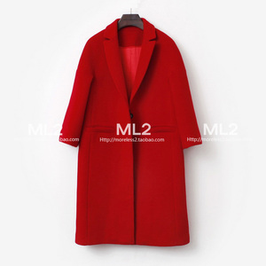ML2 2015 新年正红 高端羊绒 大红小西装领优雅7分袖宽松长大衣