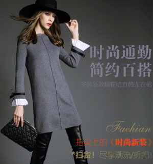 2015年 春款欧美名媛风风琴袖百褶袖蝴蝶结圆领羊毛连衣裙