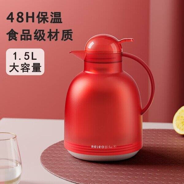 【京东】【24.5】物生物保温壶家用大容量玻璃内胆热水瓶学生宿舍保暖开水瓶 1500ml高雅红【红胆保温】: