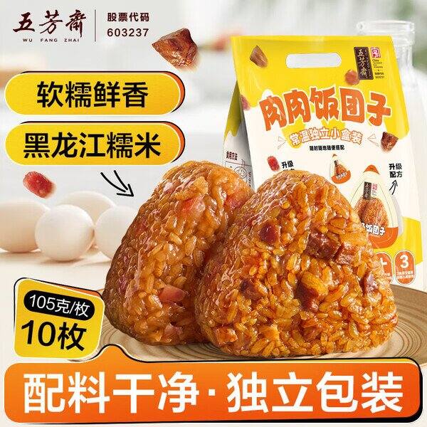【京东】【29.9】五芳斋饭团卤肉香肠糯米多料饭团微波加热即食糯米方便速食点心早餐饭团 105克*10枚肉肉饭团(卤肉+香肠):