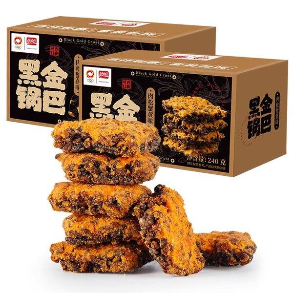 【京东】【14.9】盼盼黑金锅巴肉松蟹黄味宿舍零食小吃办公下午茶休闲食品酥脆锅巴 肉松蟹黄味锅巴*2箱【共16包】: