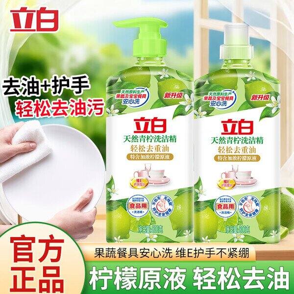 【京东】【17.9】立白青柠洗洁精APG薄荷洗洁精除菌去油不伤手食品用果蔬可洗家用 800g天然青柠洗洁精【2瓶】: