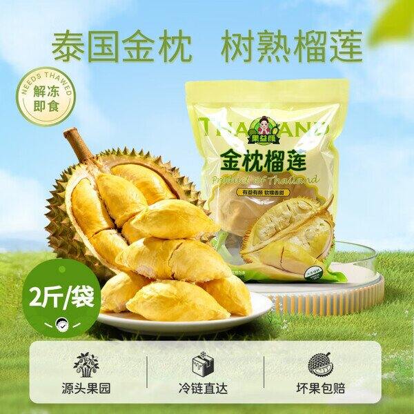 【京东】【58】果益颜金高A级果泰国冻榴莲肉金枕头2斤装 新鲜生鲜水果液氮锁鲜榴莲肉 果益颜A 1000g/净重2斤: