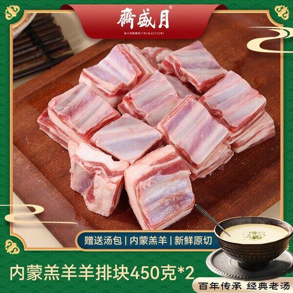 【京东】【69.9】月盛斋国产原切羔羊羊排块450g*2(带料包) 羊肋排切块 羊肉生鲜 清真: