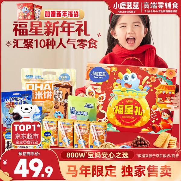 【京东】【44.4】小鹿蓝蓝宝宝儿童零食礼盒新年福星礼盒节日礼包送礼934g:https://u.jd.com/lOyzNE4【京东】【9.9】小鹿蓝蓝0蔗糖DHA空气沙琪玛儿童零食营养早餐小口袋饼点心休闲食品下午茶 空气沙琪玛尝鲜装60g*1【4小包】:https://u.jd.com/layuQuZ【京东】【21.9】小鹿蓝蓝婴幼儿无麸质米饼零食3口味混合宝宝低敏零食超值装120g(30小袋):https://u.jd.com/lOybhvB【京东】【16.9】宝宝馋了婴幼儿手指泡芙条原味 ... 全部信息