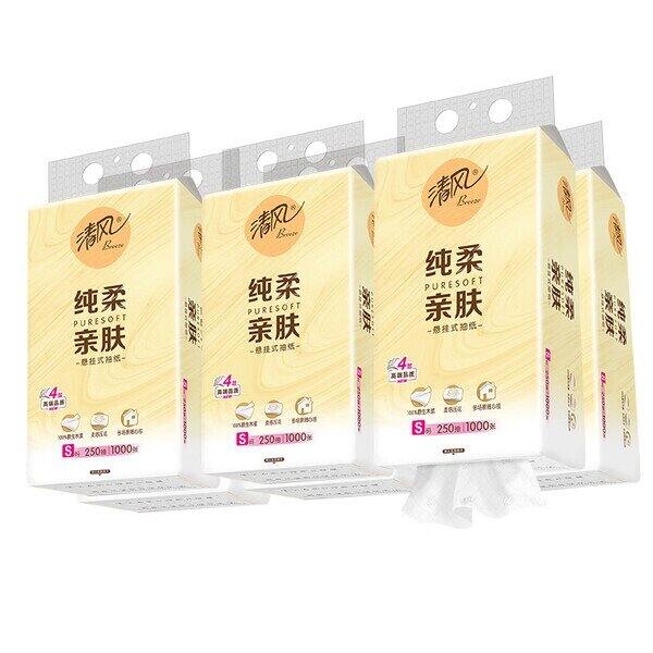 【京东】【14.9】清风纯柔系列挂抽 S码4层250抽*6包整箱悬挂式抽纸 家用量大实惠装: