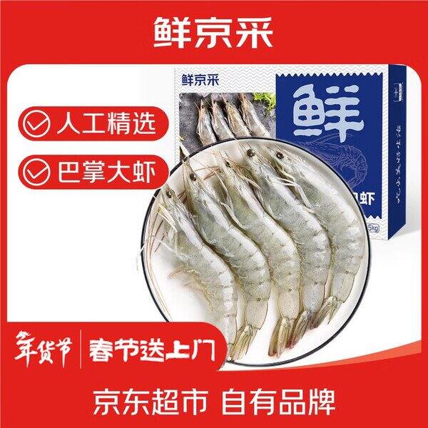 【京东】【89.9】 鲜京采厄瓜多尔白虾 净重 3斤/盒 28-46只/盒 :