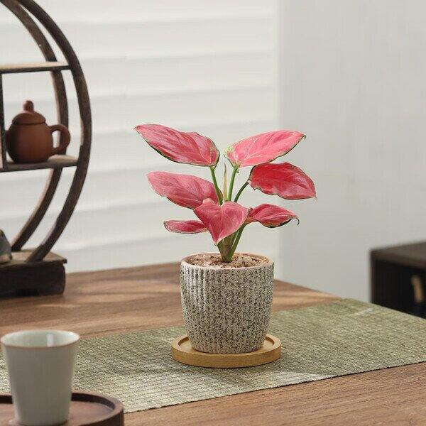 【京东】【9.88】八芽如意盆栽吉利红室内好养花卉小绿植办公桌面植物盆景源头直发包邮 迷你吉利红-星徽盆-竹底托 带陶瓷盆栽好: