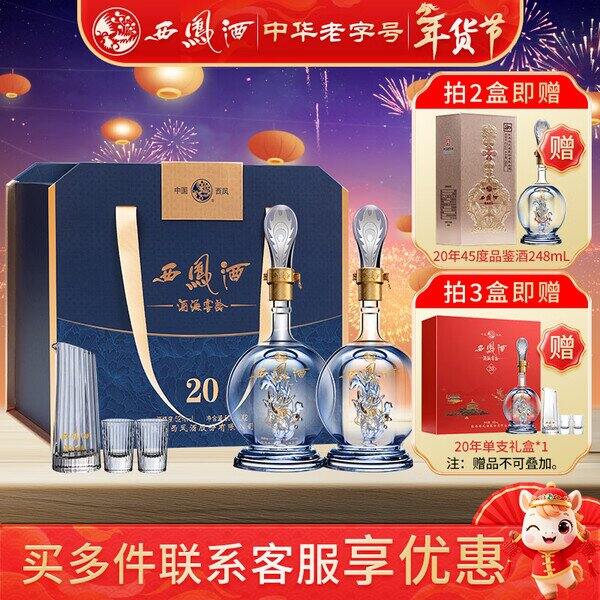 【京东】【381】西凤酒20年高档白酒礼盒过节送礼 企业采购员工福利陕西特产送领导 52度 500mL 2瓶 20年传承礼盒 :