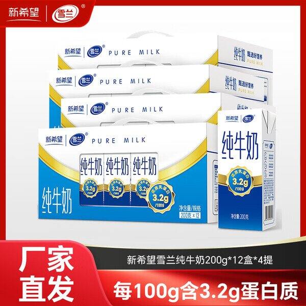 【京东】【77】新希望【4箱】高原纯牛奶200g*12 4箱 高端礼盒12-1月日期 日期新鲜 4提装: