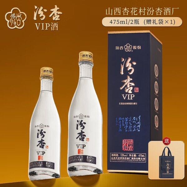 【京东】【75】汾杏VIP清香经典 山西杏花村 清香型白酒 粮食酒 高端商务宴请 53%vol 475mL 2瓶 赠礼袋: