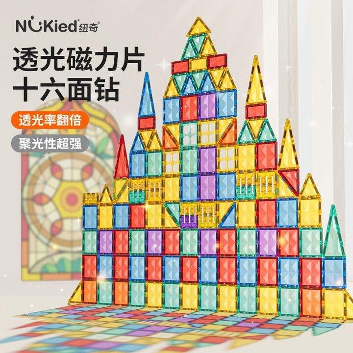 【77.9】纽奇透光彩窗磁力片钻面积木方形拼装男女孩磁性强磁益智儿童玩具: