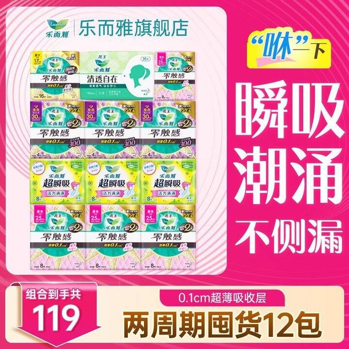 【58】花王乐而雅零触感卫生巾两周期日夜组合12包119片棉柔舒适防侧漏: