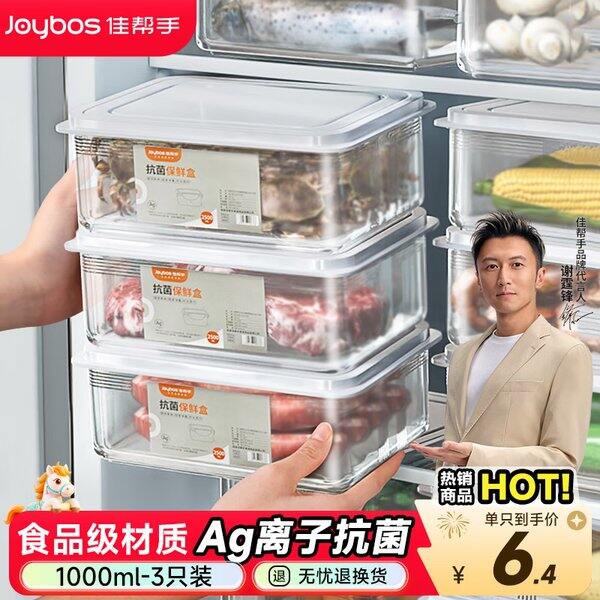 【京东】【16.18】佳帮手冰箱保鲜盒食品级抗菌收纳盒专用密封水果蔬菜冷冻盒1000ml3只装: