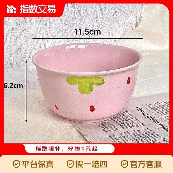 【京东】【4.99】草莓陶瓷碗勺家用高颜值米饭碗少女心甜品碗釉下彩 【4件套】浅粉草莓2碗2勺: