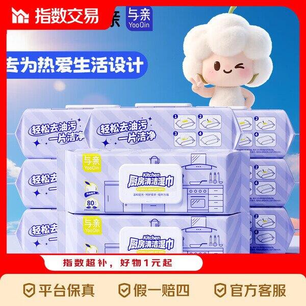 【京东】【4.99】珍珠纹大包厨房湿巾湿纸巾去油污加厚加大80抽 80抽*2包【加大加厚】: