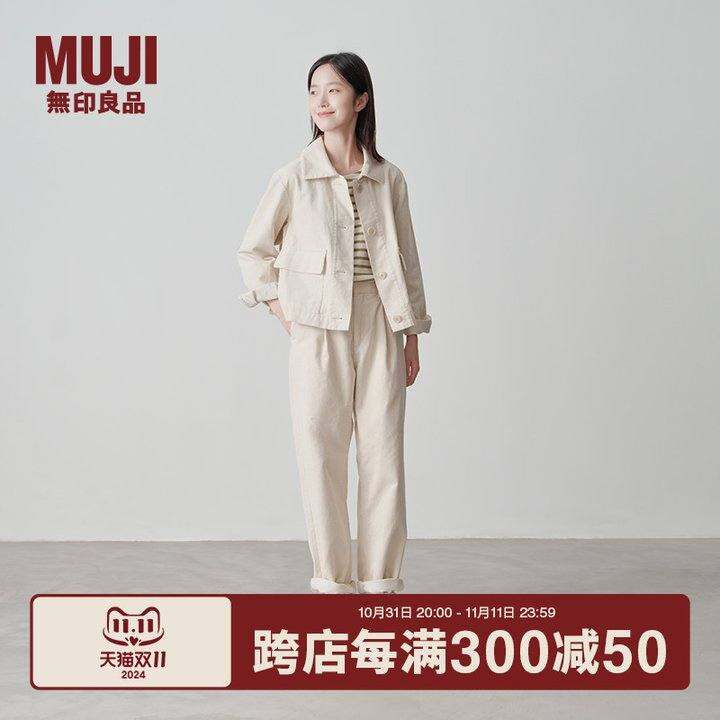 无印良品 MUJI 女式 木棉混灯芯绒抽褶宽版裤 裤子女款长裤24年冬