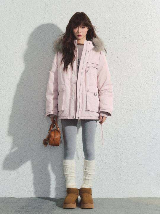 RECOIN R1C 超好看粉色可拆卸毛领派克服女冬季加厚小个子羽绒服