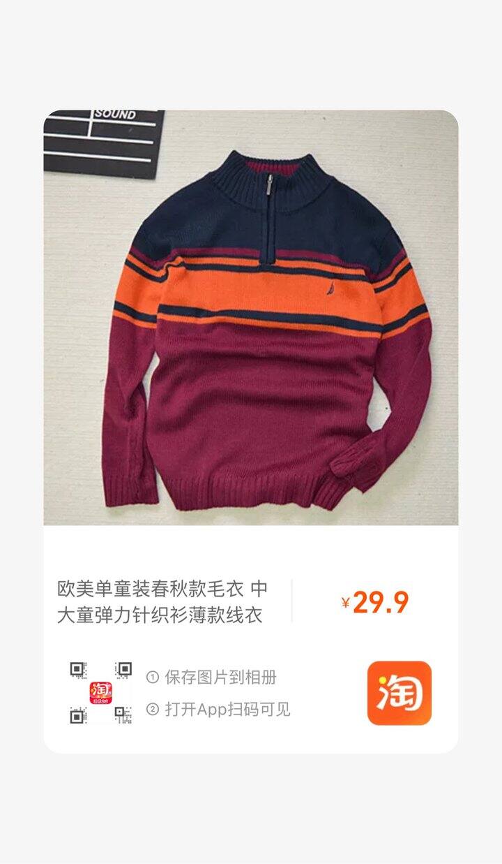 拼刀刀,这家只是单纯吐槽。首先他是儿童化纤毛衣,应该是海外订单校服。我买的时候才27,然后我收到货才1天时间,老板估计看别人推荐的,生意好了,直接从31涨价到46。我就瞬间不想要了