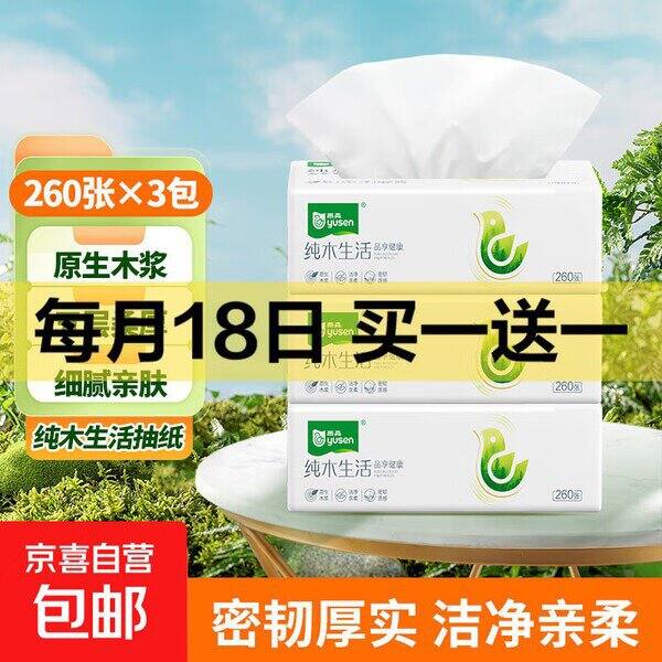 💰5.99,雨森纯木生活抽纸5层 260张*3包https://u.jd.com/WDu1gdf