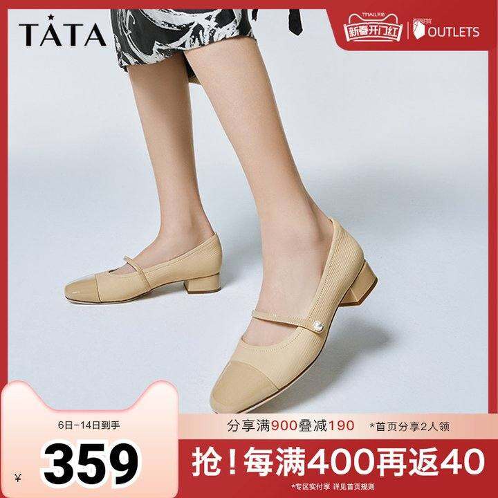 Tata他她粗跟玛丽珍鞋女复古小皮鞋女通勤单鞋女2025春新DJAA2AQ4