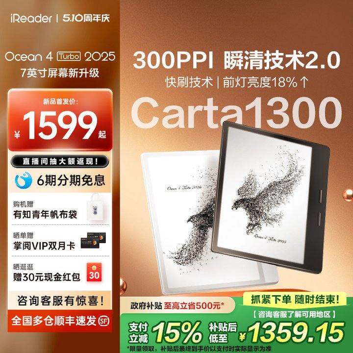 【新品首发】掌阅iReader Ocean4 Turbo2025智能电子书墨水屏阅读器7英寸护眼电纸书阅览器便携小说水墨屏PDF