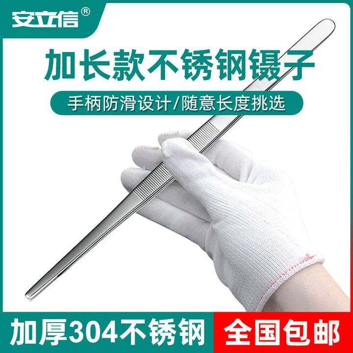 不锈钢镊子圆头带齿维修镊子加厚加硬加长鱼缸水草夹子敷料大镊子