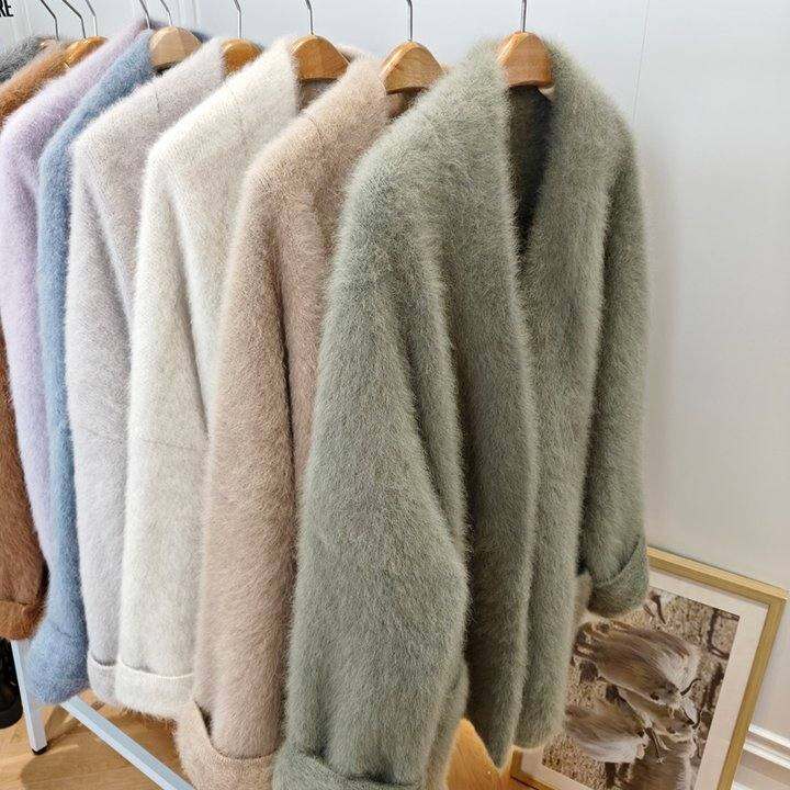重磅大克重!100%纯山羊绒衫女V领花纱毛衣开衫披肩外套春季新款
