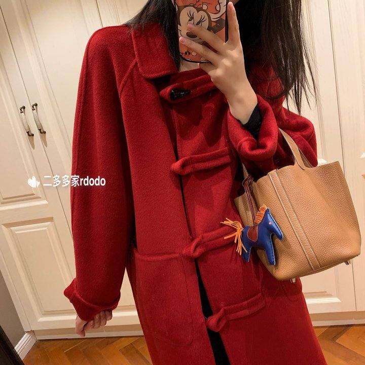 Rdodo年度返场独家波尔多本命红色牛角扣高支山羊绒羊毛软糯大衣
