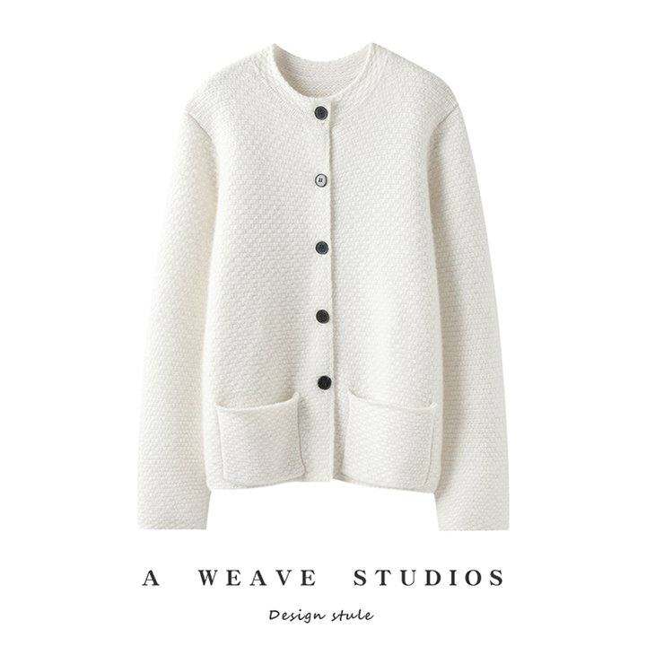 自带迷人气质!女士圆领单排扣针织开衫100纯羊绒衫2025冬季新款