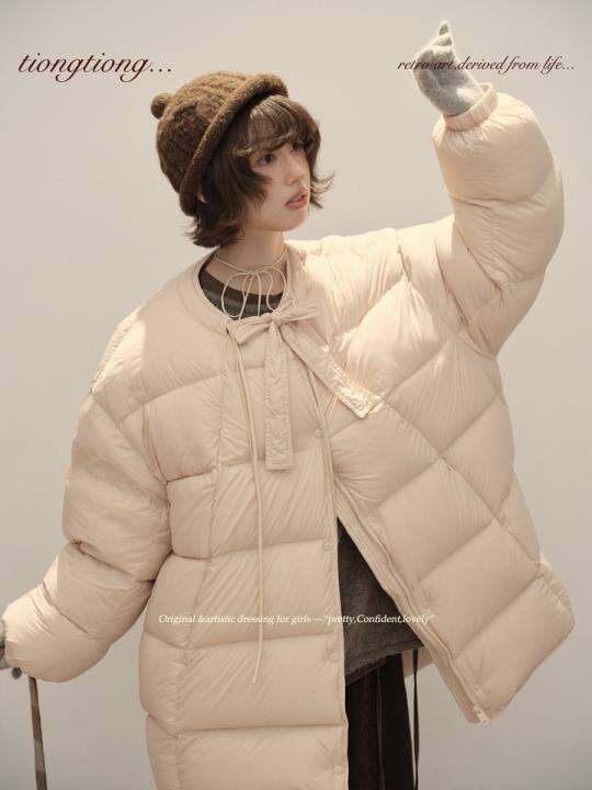 【10/31 20:00 直降8折】中长款加厚飘带云朵泡芙90白鸭绒羽绒服