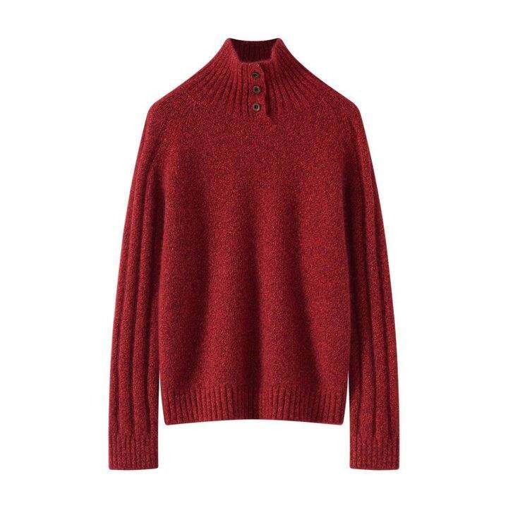 康宝莱系列!75%山羊绒25%桑蚕丝高领女三粒扣花纱百搭针织打底衫